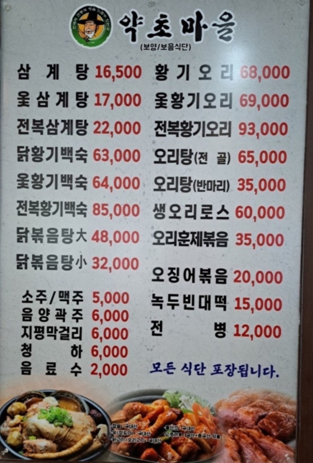 닭백숙/찜, 닭볶음탕, 삼계탕 |